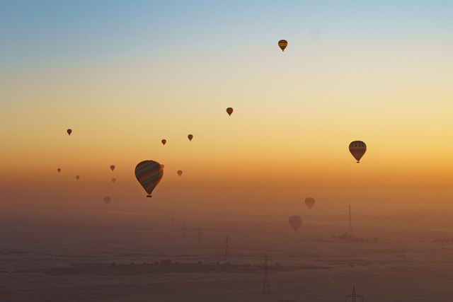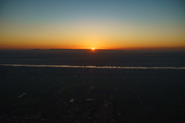 Über dem Tal der Könige und Hatschepsut dem Sonnenaufgang entgegen...