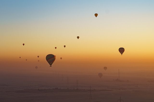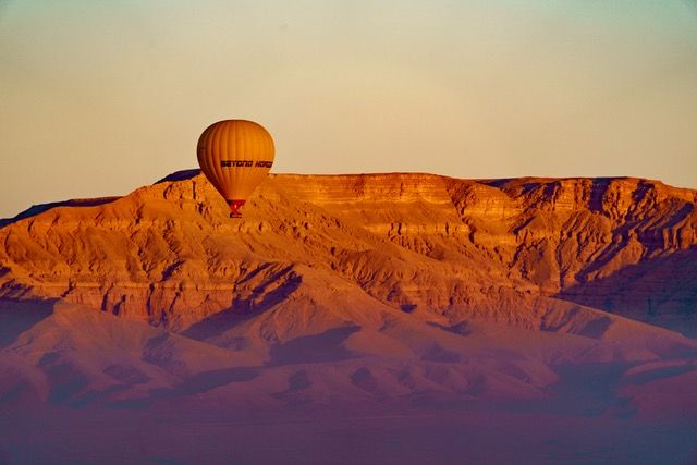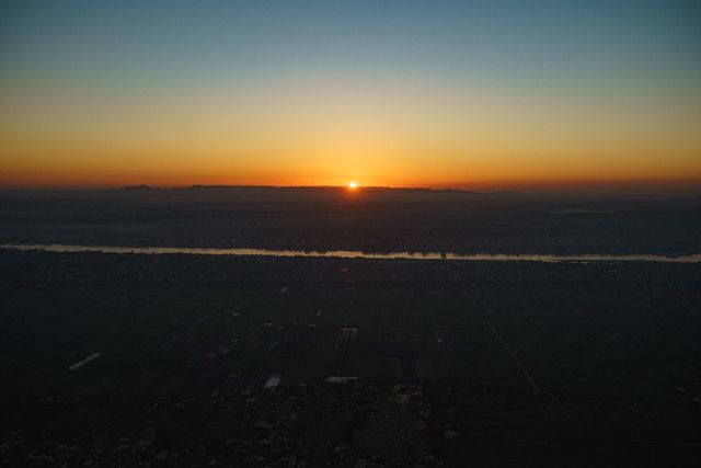 Über dem Tal der Könige und Hatschepsut dem Sonnenaufgang entgegen...
