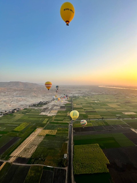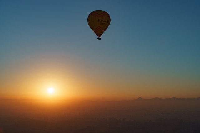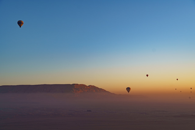 Über dem Tal der Könige und Hatschepsut dem Sonnenaufgang entgegen...